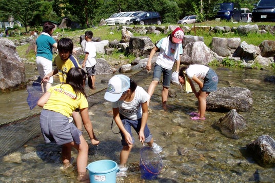 岐阜県飛騨市河合町元田地内に設置されている「なかんじょ川施設」は、白川村へ抜ける国道360号天生峠手前の一級河川小鳥川沿いに位置するキャンプ場であり、釣り公園を併設した飛騨市の公の施設です。魚の手掴みや釣りといった川遊び体験ができる人工河川をはじめ、バンガローやコテージ、オートキャンプサイトを備えています。