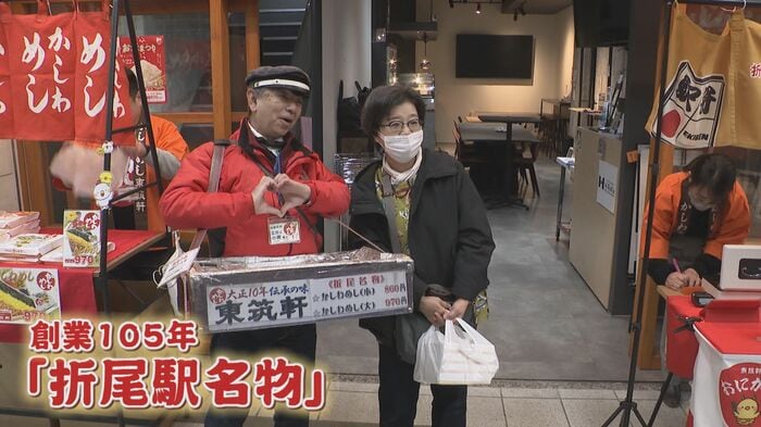 東筑軒で立ち売りを担当するのは、小南英之さん(66)だ。訪れた女性客は「『かしわめし』大好きだから、で、ネットで(イベントを)知って『この人から買いたいな』と思って来た。会えてうれしい!」と小南さんから『かしわめし』を購入。ご満悦のようすだった。