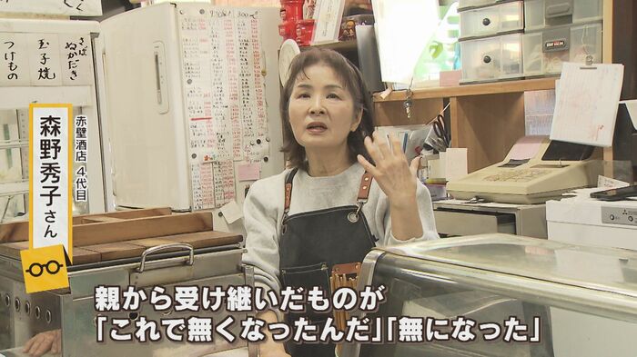 「お酒とか品物とか見ていたら、このお父さんとこんな話したなとか、すね…」と話すのは、店の5代目の森野敏明さん(48)と母で4代目の秀子さん(73)。2022年の大規模火災による店舗移転後も2人で切り盛りしていた。