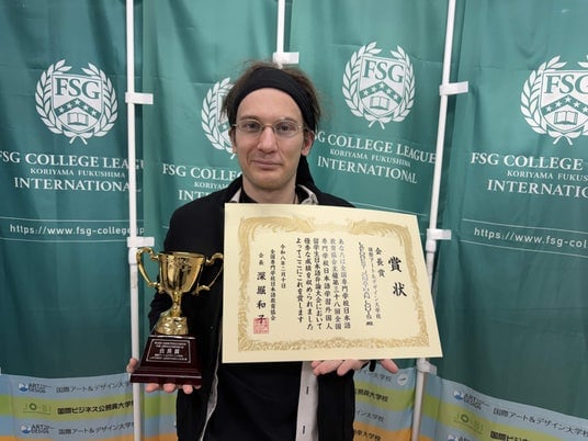 NSGグループのFSGカレッジリーグ国際部は、2026年2月10日に大阪で開催された「日本語学習外国人留学生日本語弁論大会」において、日本語科の学生、ラフォレスト・ジョナサン・ルイスさん(アメリカ/通称:ジェイさん)が、全国専門学校日本語教育協会 会長賞を受賞するという快挙を成し遂げました。