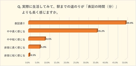 続いて、駅までの道のりに関する体感時間についてお伺いしました。
