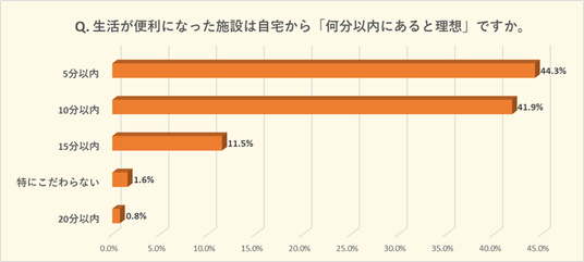 生活利便が高い施設は自宅から「5分以内」に欲しいとの回答が最多