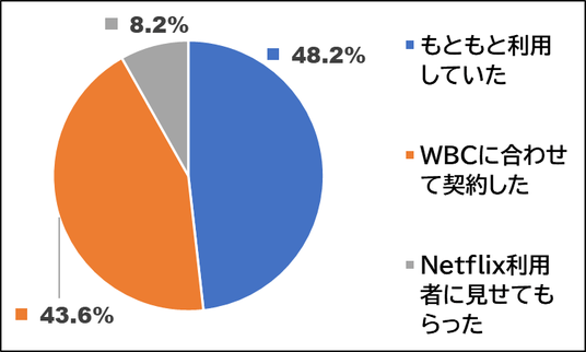 今回のWBCのリアルタイム中継が「Netflix独占配信」とラジオ中継であることを知っていた人は78.1%に上り、開幕前から大きな注目を集めていました。しかし、実際にリアルタイムで視聴した人は約4割にとどまり、58.7%は「リアルタイムでは見ていない(ニュースやSNSでの結果確認のみ)」と回答。地上波という「誰でもすぐに観られる」環境が失われたことで、多くのファンにとって観戦のハードルが大きく上がった実態が浮き彫りとなりました。