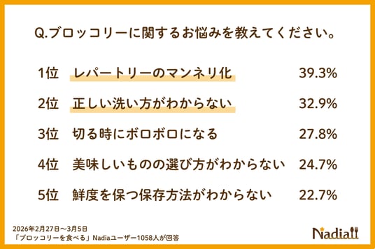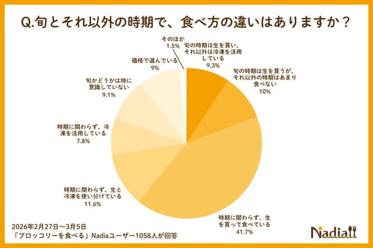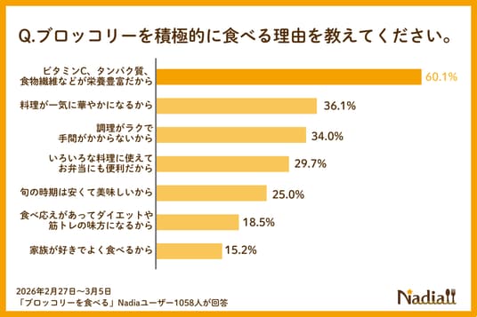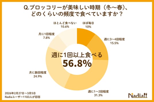 Nadia株式会社(東京都港区/代表取締役社長 葛城嘉紀)にて運営している料理メディア「Nadia(ナディア)」(URL:https://oceans-nadia.com/)は、2026年4月から「指定野菜」追加されるブロッコリーに関する意識調査(※)を行いました。