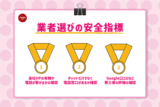 SNSアカウントのみで活動する業者ではなく、公式ホームページを持ち、住所や固定電話番号(市外局番から始まる番号)を明記しているかを確認してください。