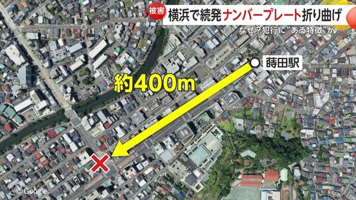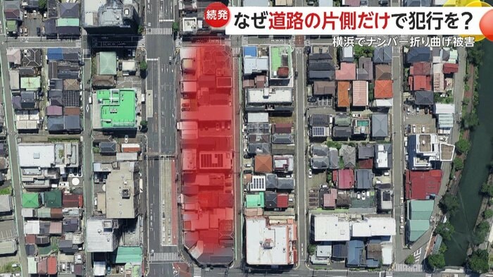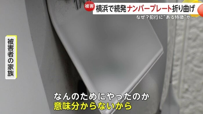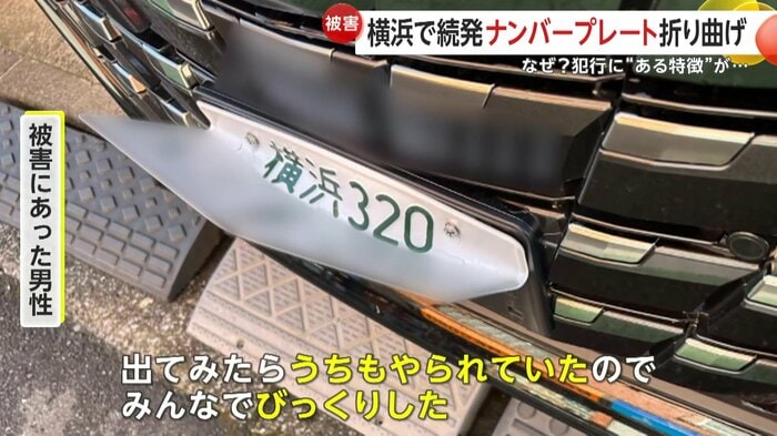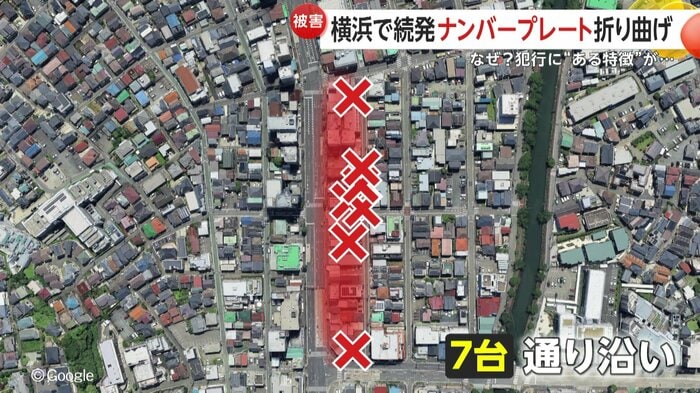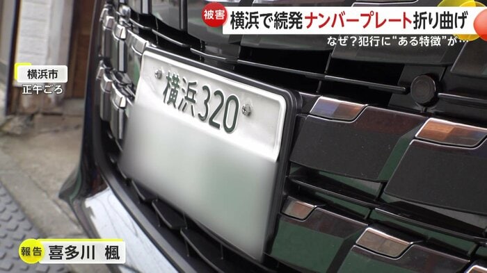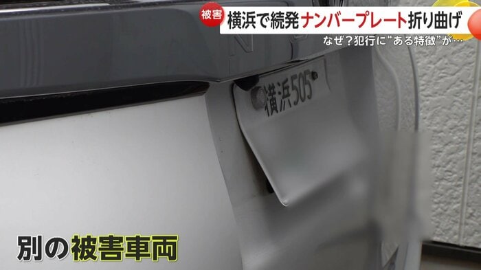 7日、横浜市南区で10台以上の車のナンバープレートが曲げられる被害が相次いで発覚した。