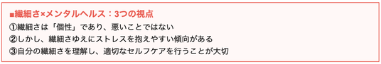 大切なのは、自分の繊細さを否定するのではなく、理解した上で付き合い方を工夫することです。