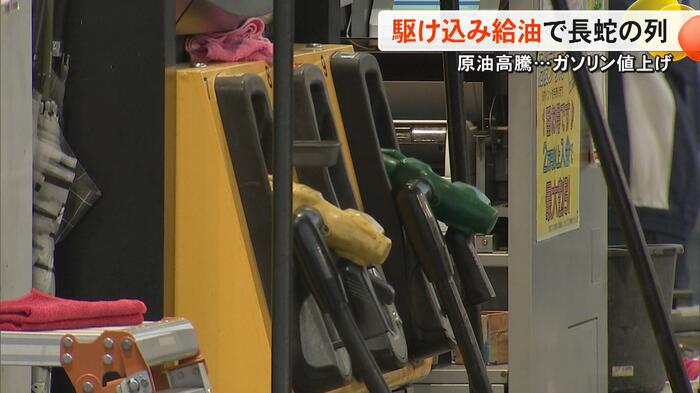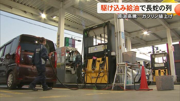 イラン情勢の緊迫化を受けて原油価格が上昇するなか、全国のガソリンスタンドでは値上げの動きが相次いでいる。熊本市のガソリンスタンドも3月11日夜に『駆け込み給油』をする客で行列ができていた。