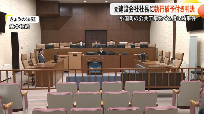 小国町発注の公共工事をめぐる贈収賄事件で、贈賄の罪に問われている建設会社・元社長の男に判決だ。熊本地裁は3月13日に「反省の態度を示している」などとして、男に執行猶予付きの有罪判決を言い渡した。