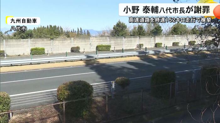 八代市によると、小野泰輔市長は2025年12月18日の午前8時半ごろ、熊本市内から八代市役所に登庁するため、九州自動車道下りで自家用車を運転中に宮原サービスエリアと八代インターチェンジ間で、法定速度時速100キロのところを時速152キロで走行。