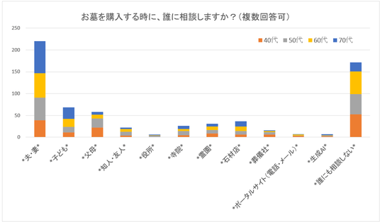 配偶者が最重要相談相手。一方で約3割が「誰にも相談しない」と回答しており、自己判断傾向も見られる。