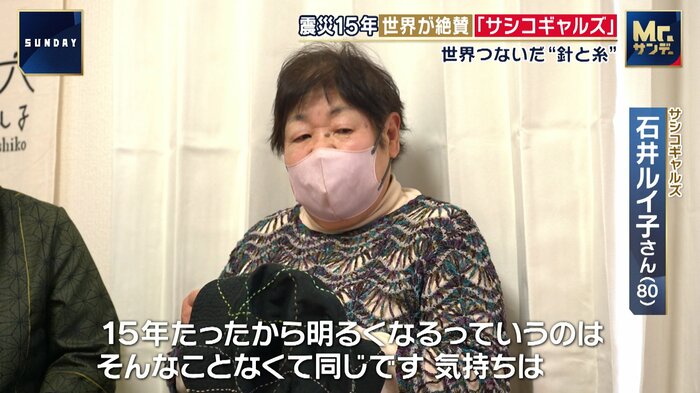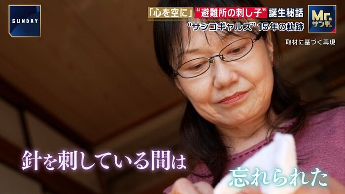 無心になれるっていうのかな。(外に)出れば、何にもないでしょ、がれきの町だし。一針一針…みんなそうだったもん、津波のころは…。
