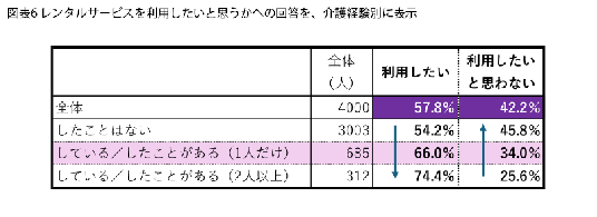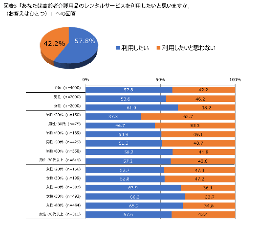 全員を対象に、高齢者介護用品のレンタルサービスを利用したいと思うか聞きました(図表5)。