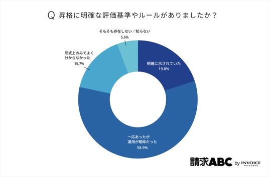 昇格に関する評価基準やルールの有無についての調査では、「一応あったが運用が曖昧だった」(58.9%)が最も多い結果となりました。基準は存在していても、その運用が十分に明確とは感じられていない状況がうかがえます。