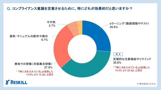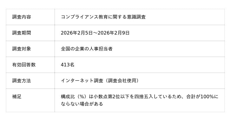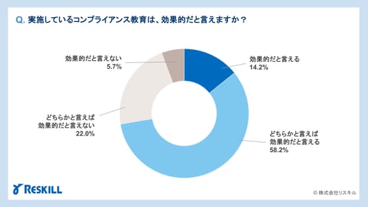 社員研修・人材育成支援事業を展開する株式会社リスキルは、全国の企業で人事を担当する413名を対象に「コンプライアンス教育に関する意識調査」を実施した。