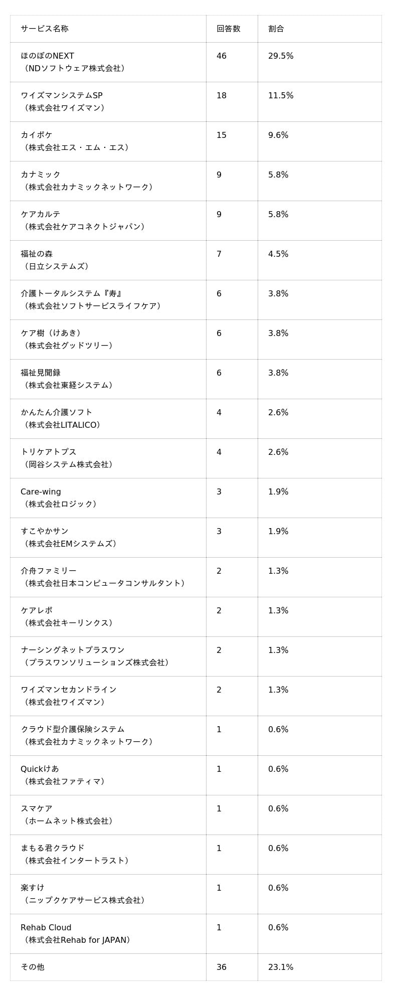設問3:(「利用している」と答えた方は)利用している介護記録ソフトを教えてください