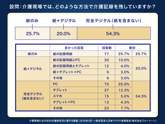 設問1:介護現場では、どのような方法で介護記録を残していますか?