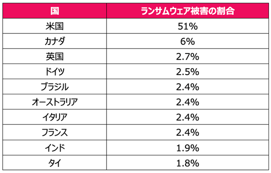 国別でのランサムウェア攻撃