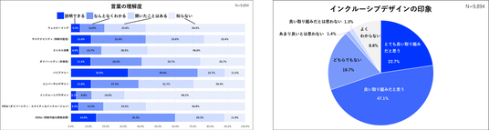 (1)認知と受容:「インクルーシブデザイン」の言葉の内容まで理解している層は約12%に留まるが、コンセプトを説明すると約7割が「良い取り組み」と共感。