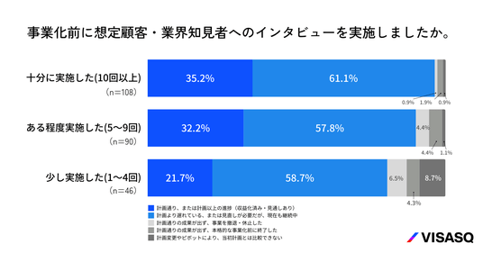 ・インタビューを十分に実施している層ほど、新規事業が計画通り進んでいる割合が高い