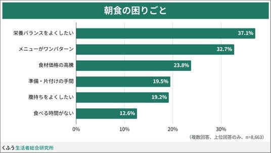 ・「栄養バランス」と「ワンパターン化」が朝食の悩み上位に