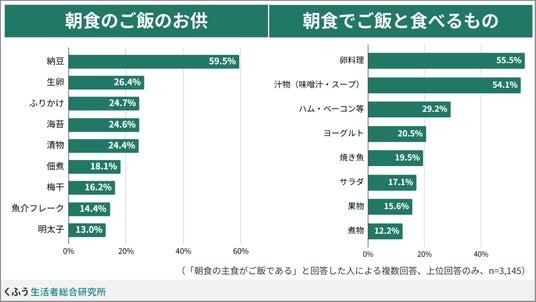 ・【ご飯派】約6割の人が朝食は「納豆ご飯」!卵料理、汁物の献立が人気