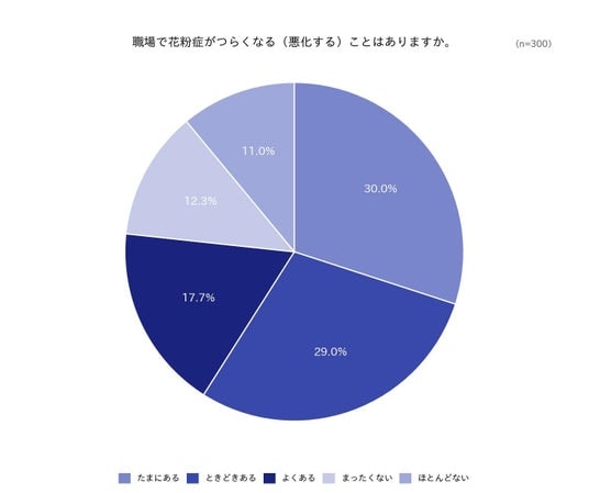 そこで今回は、全国の働く男女300名を対象に「花粉シーズンの職場環境」に関するインターネット調査を実施しました。
