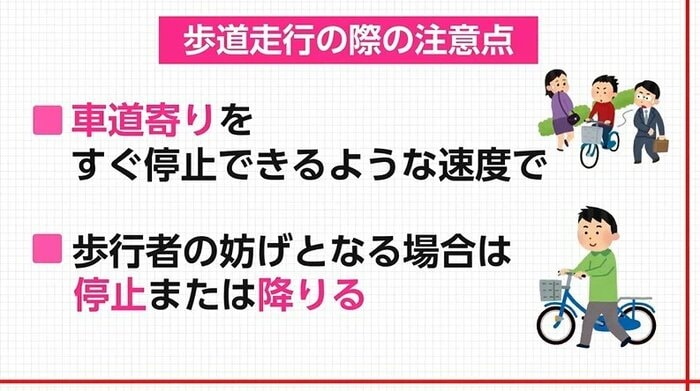 青切符について街頭インタビューをすると「車道側を通るのは危ない。高齢者がクラクションを鳴らされて車の方に倒れそうになるのを見たことがあるので、厳しいと思う」「通行区分ができているところは良いが、そうでないところが宮崎にはまだ多い」といった、車道通行に危険を感じるという声が多数上がった。