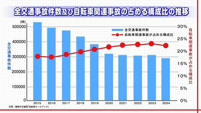 2025年に宮崎県内で発生した自転車が関係する交通事故は261件、そのうち約8割は自転車側にも交通違反があったことが判明している。