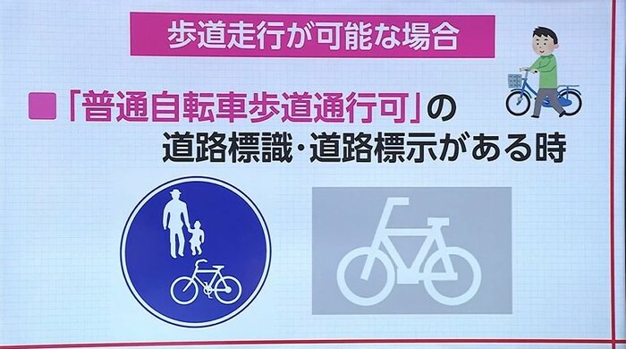 1. 「普通自転車歩道通行可」の道路標識や道路表示がある場合。