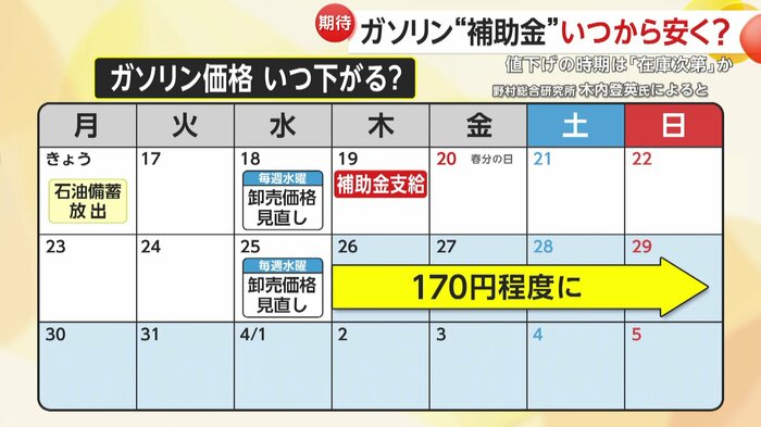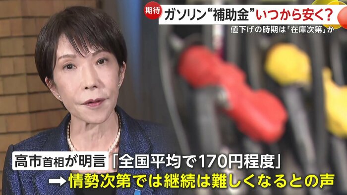 また、高市首相が明言した「全国平均で170円程度」という設定について、これからの情勢次第では、継続していくのが難しくなるとの声も出ている。