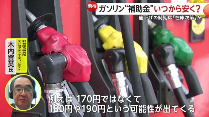 特に海外の原油価格が上がれば上がるほど補助金の額が大きくなってしまうので、もうちょっと国民消費者に負担してもらう。例えば170円ではなくて180円や190円という可能性が出てくる。
