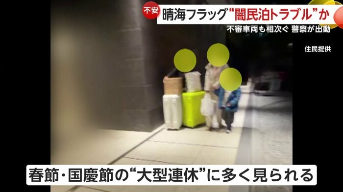 都心の人気のマンション「晴海フラッグ」で今、外国人旅行客との“闇民泊トラブル”が相次いでいるという。住民からは「四六時中、白タクを見ているような気がする」と不安の声が…。警察が連日のように出動する事態になっていた。