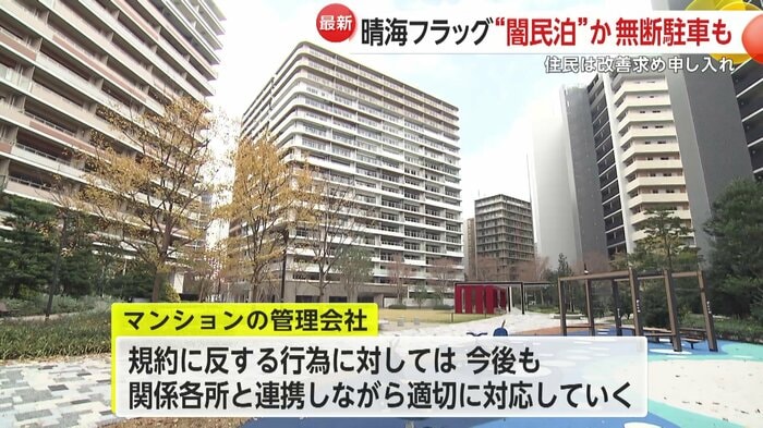 マンションの管理会社は「規約に反する行為に対しては、今後も関係各所と連携しながら適切に対応していく」とコメントしている。