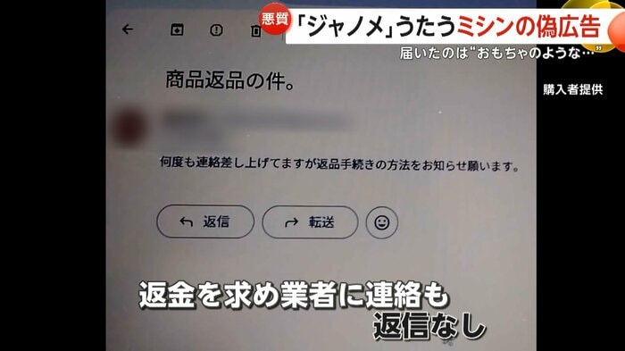 ところが届いた商品は、おもちゃのようなミシンだったという。