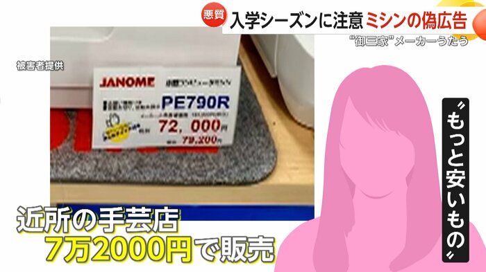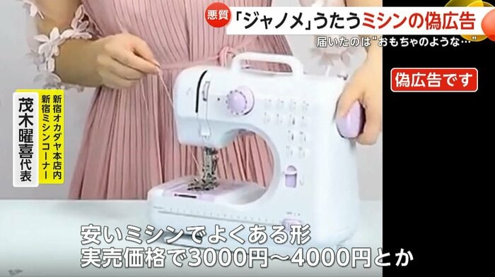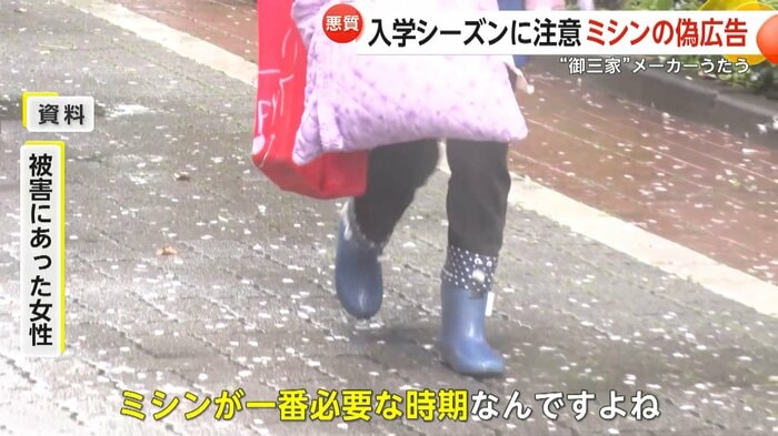 今の時期的に幼稚園や小学校の袋物とか作るから、ミシンが一番必要な時期なんですよね。買う人も多いからたぶん(偽広告は)それを狙ってやってると思います。