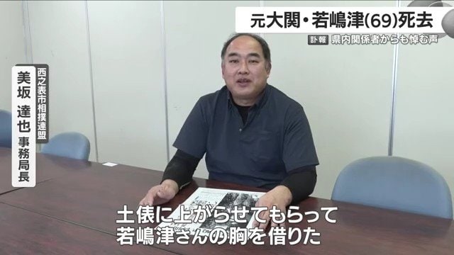 若嶋津を悼む声は地元・種子島でも。西之表市相撲連盟・美坂達也事務局長は突然の訃報に「ただただ本当に驚きだった」こう切り出した。「小学校ながら土俵に上がり若嶋津さんの胸を借りた。島民誰しもの心の中に残る力士だったと思う」美坂さんは記憶をたどるように振り返った。