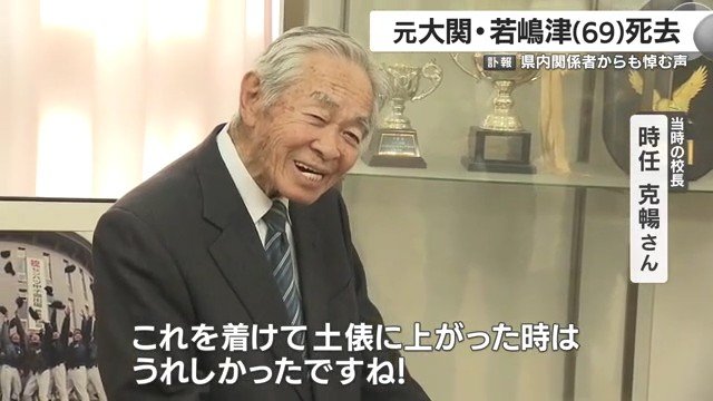 当時、学校の理事長兼校長だった時任克暢さん(94)は「これを見ると大関・若嶋津として活躍した頃の記憶がよみがえる」と感慨深げに語った。