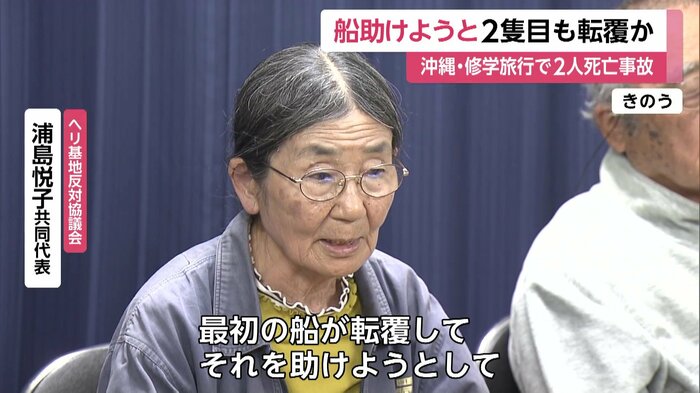 この事故は16日午前10時過ぎ、名護市辺野古の沖合で京都府の修学旅行生を乗せた船2隻が転覆し、女子生徒1人と船長の男性が死亡したもの。