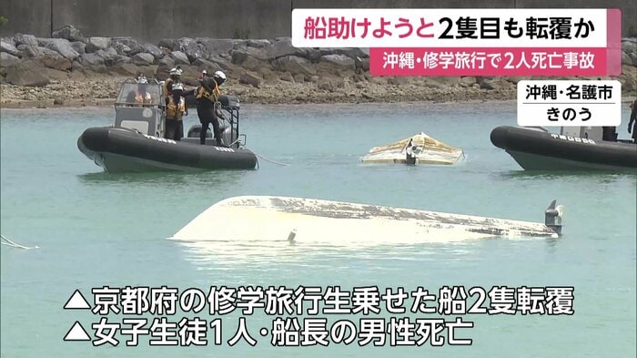 16日、沖縄・名護市の沖合で船2隻が転覆し、女子生徒と船長の2人が死亡した事故で、最初に転覆した船を助けようとして2隻目も転覆したとみられることが分かった。