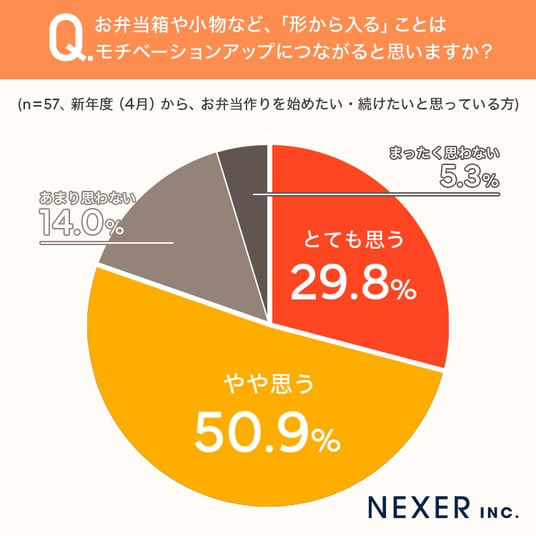 そして特に注目すべきは、約8割の方がお弁当箱や小物などを揃える「形から入る」ことがモチベーションアップにつながると感じている点です。