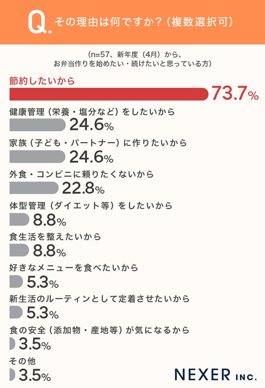 ■73.7%が「節約したいから」と回答、お弁当を始めたい理由の第1位に