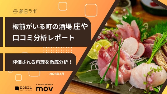 「板前がいる町の酒場 庄や」103店舗の「口コミ平均評価」「外国語口コミ率」「頻出キーワード」などを調査