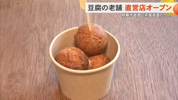 新たにオープンした「茶屋首里とうふ」では、豆腐製造過程で出る豆乳やおからを活用したアンダギーやまんじゅうがバラエティ豊かに並ぶ。そして何より、店頭にはできたてのあちこーこー豆腐が湯気を立てて置かれている(「あちこーこー」とは、うちなーぐち(沖縄の言葉)で「熱々の」という意味)。