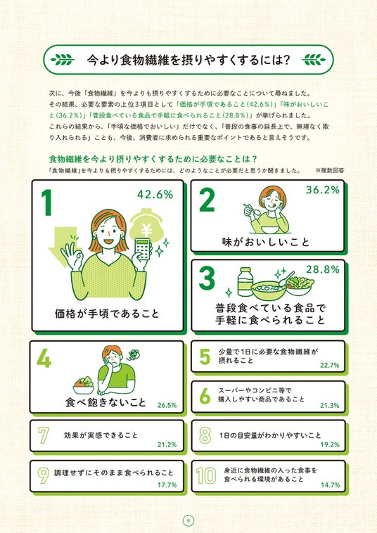 「食物繊維を十分に摂取できていないと思う」背景に、「価格」「おいしさ」「手軽さ」という課題あり