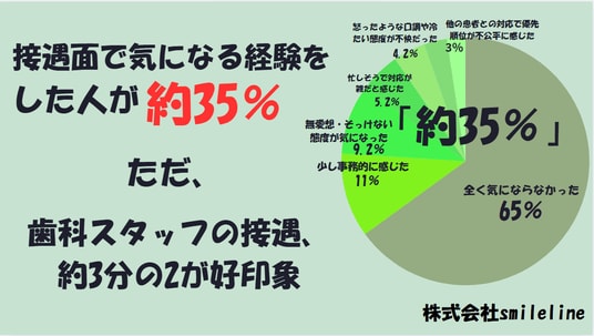 ■接遇面で気になる経験をした人が約35%ただ、歯科スタッフの接遇、約3分の2が好印象