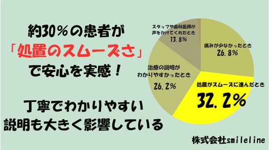 ■約30%の患者が「処置のスムーズさ」で安心を実家!丁寧で分かりやすい説明も大きく影響!