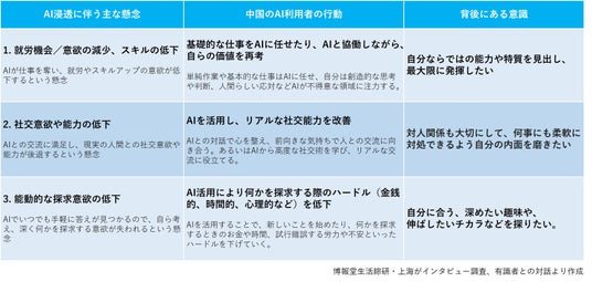<表>AI浸透に伴うグローバルな懸念と中国のAI利用者の対応行動