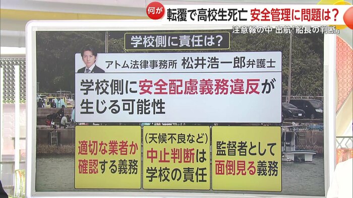 例えば、学校側には「船を出したのは適切な業者なのか確認する義務がある」。