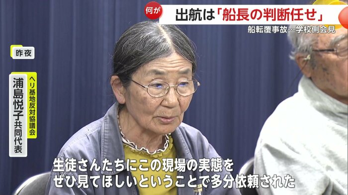 16日夜の会見で浦島悦子共同代表は「私たちの運動の一環として、生徒さんたちにこの現場の実態をぜひ見てほしいということで多分依頼されたと思う」と話していた。